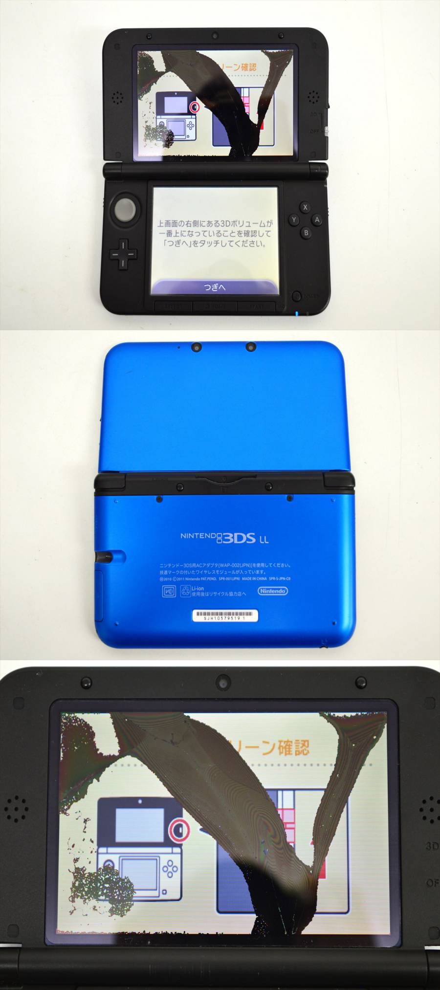 > TE1●ジャンク品●ニンテンドー 3DS LL 本体 SPR-001 ブルー×ブラック 液晶割れ/通電OK