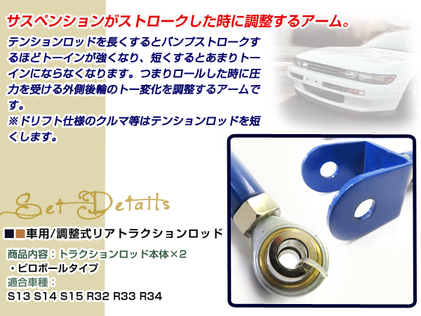 > 調整式 ピロ リア トラクションロッド 日産 シルビア S13 S14 S15 180SX スカイライン R32 R33 R34 フェアレディZ Z32 セフィーロ A31
