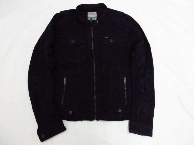> m4627 美品 G-STAR RAW WOMEN デニムジャケット ブラックデニム M ジップアップ ダメージ加工 綿混紡 上着 ジージャンなど