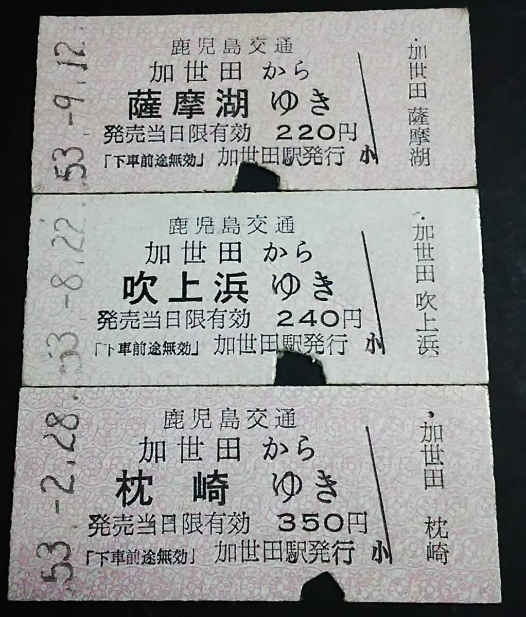 - 【乗車券(B型)[廃線]】 鹿児島交通(加世田→薩摩湖、加世田→吹上浜、加世田→枕崎)3枚セット S53