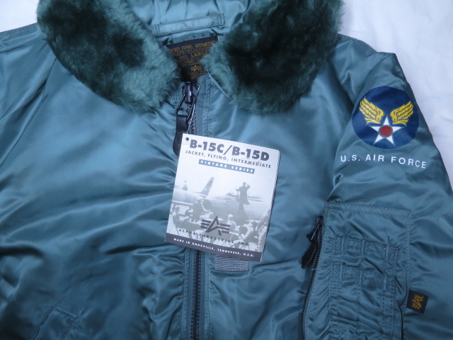 > L デッドストック USA製 ALPHA B-15D フライトジャケット アメリカ製 米国製 アルファ ボア襟 MA1 未使用 新品