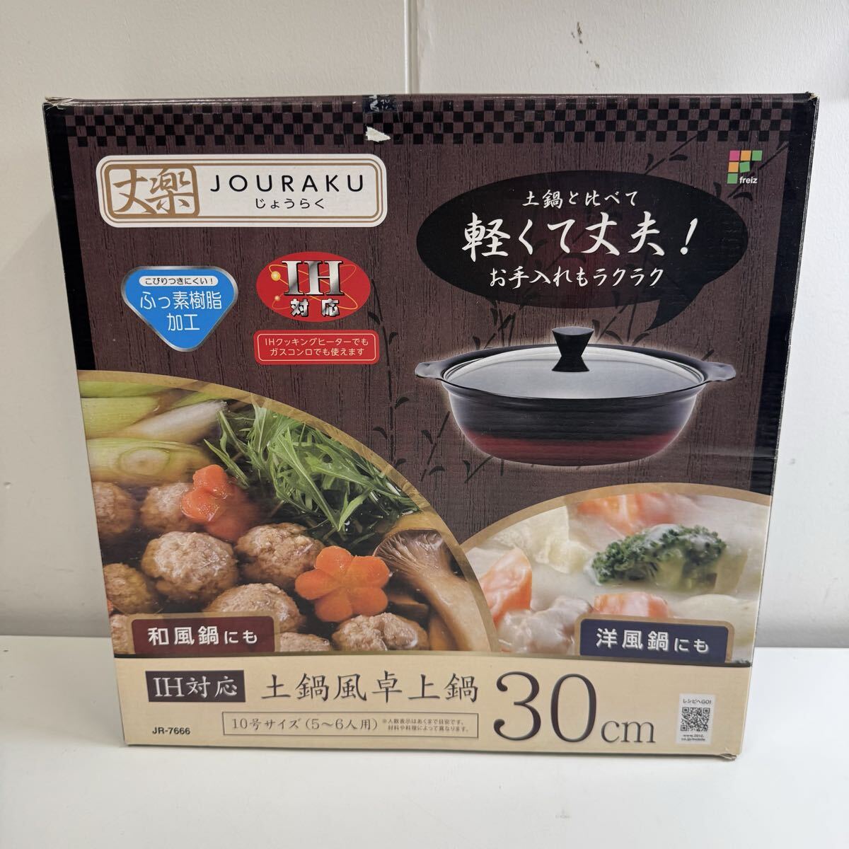- 未使用品 ガス火 IH対応 土鍋風卓上鍋 30cm 10号 5〜6人用 両手鍋 調理器具 鍋