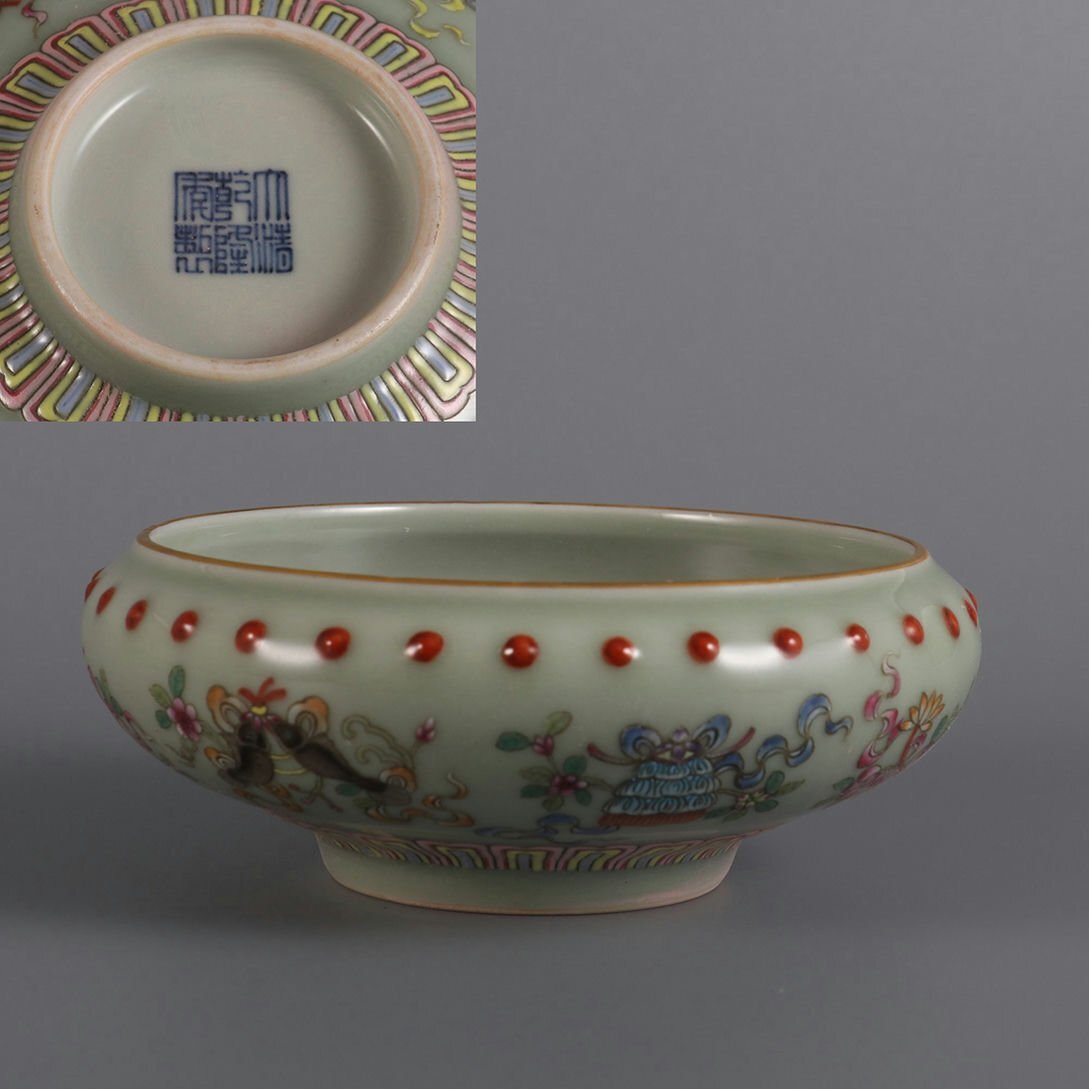 - ▼渡鶴羽▼A0725清乾隆 豆青釉粉彩八宝赤龍紋水洗・古陶磁器 ・珍品旧蔵・古賞物・時代物