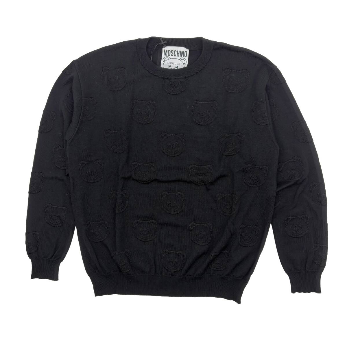 - 【サイズ選択】男女兼用OK■モスキーノ■エンボス加工 テディベア総柄 クルーネックニット セーター■MOSCHINO■黒■バージンウール100%