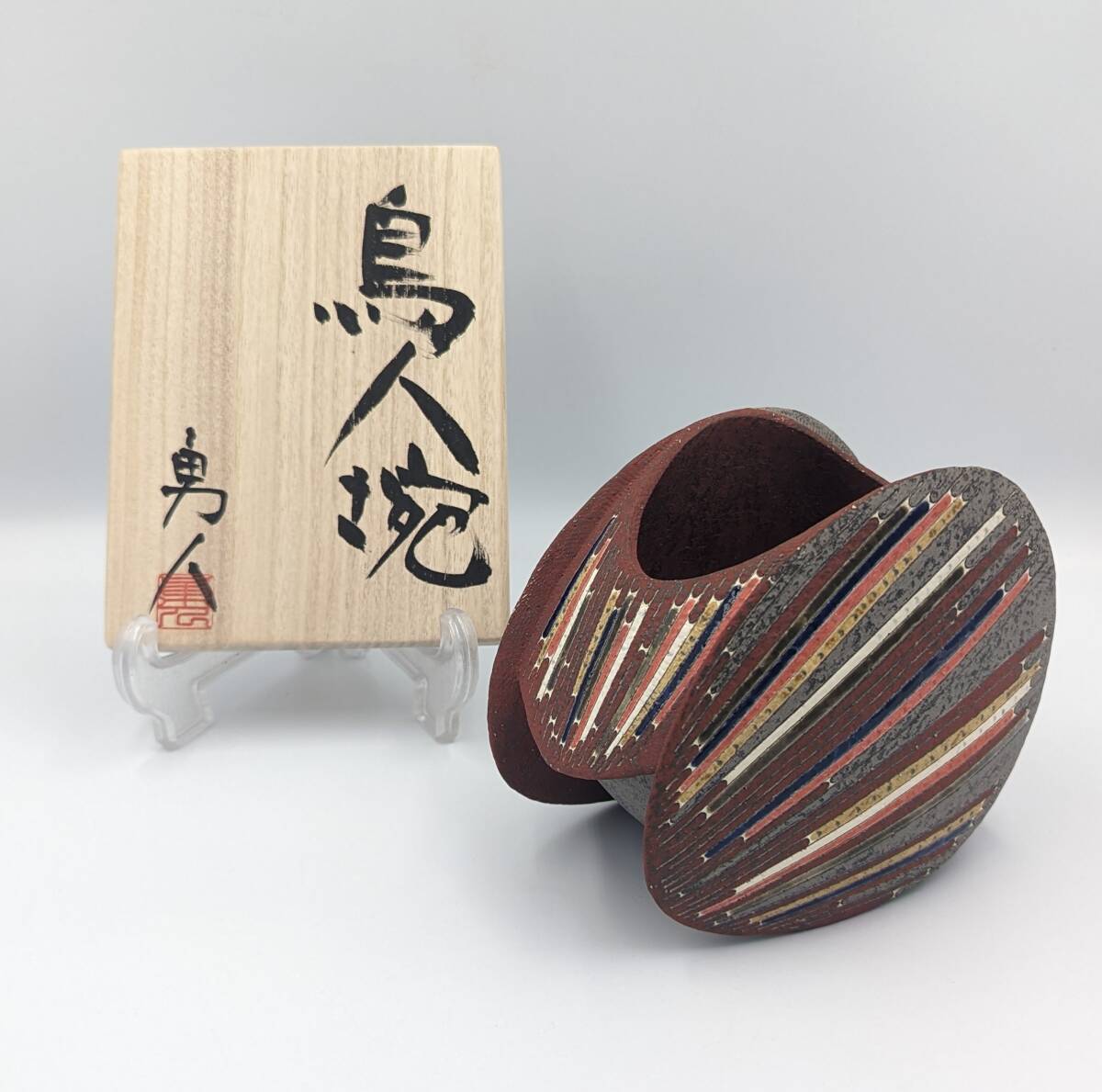- 澤田勇人 鳥人碗 共箱 真作 日本橋三越本店 個展出品作 カタログ付 日本伝統工芸展入選 日本陶芸展入選 茨城県笠間出身