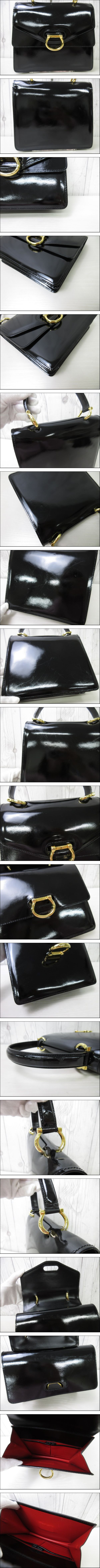> 極美品 CELINE セリーヌ ヴィンテージ ハンドバッグ バッグ パテントレザー 黒 92687