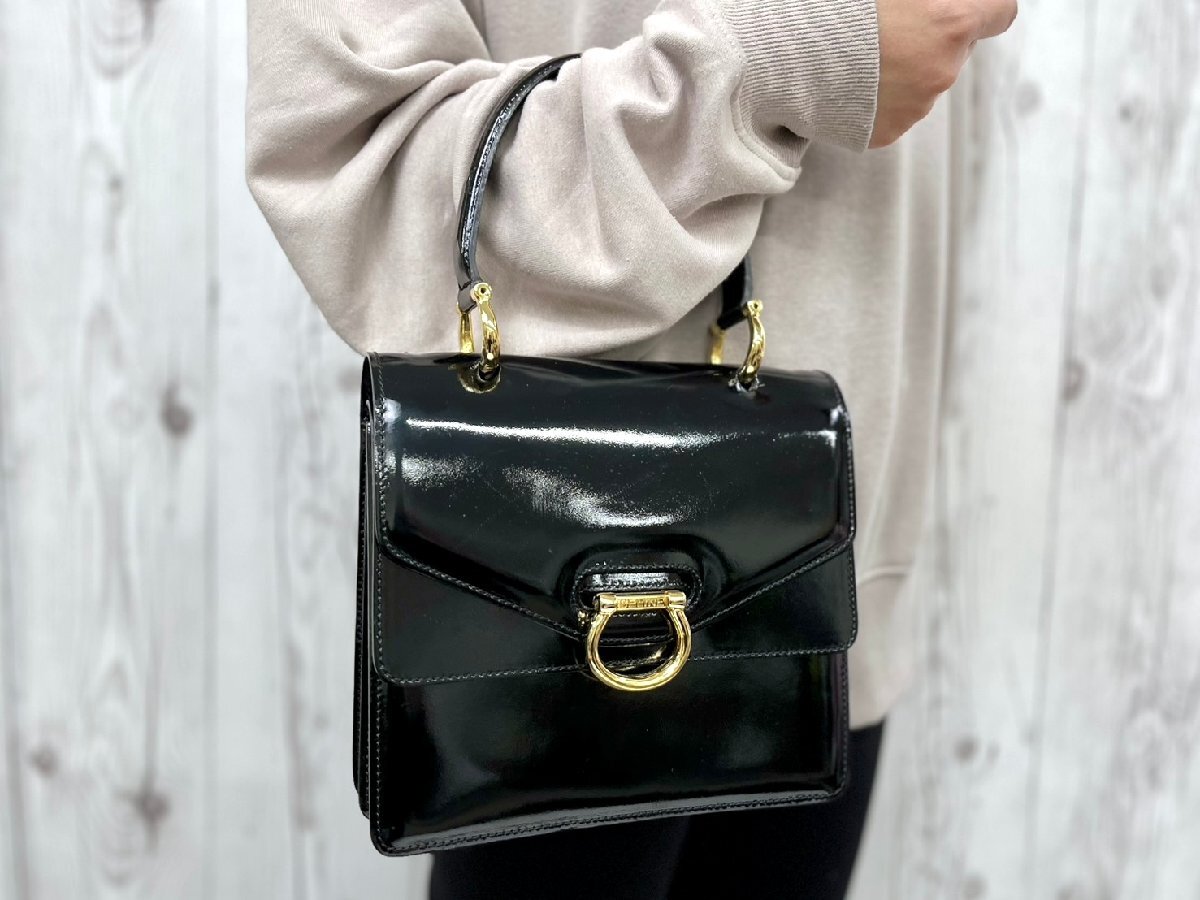 - 極美品 CELINE セリーヌ ヴィンテージ ハンドバッグ バッグ パテントレザー 黒 92687