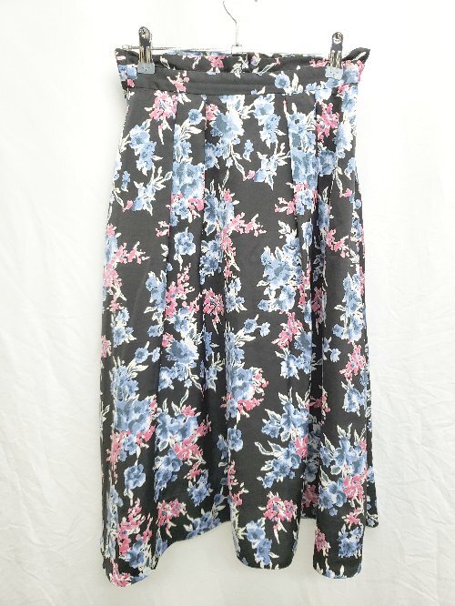 > ◇ MISCH MASCH ミッシュマッシュ 総柄 膝下丈 フレア スカート サイズ1 ブラック マルチ レディース P
