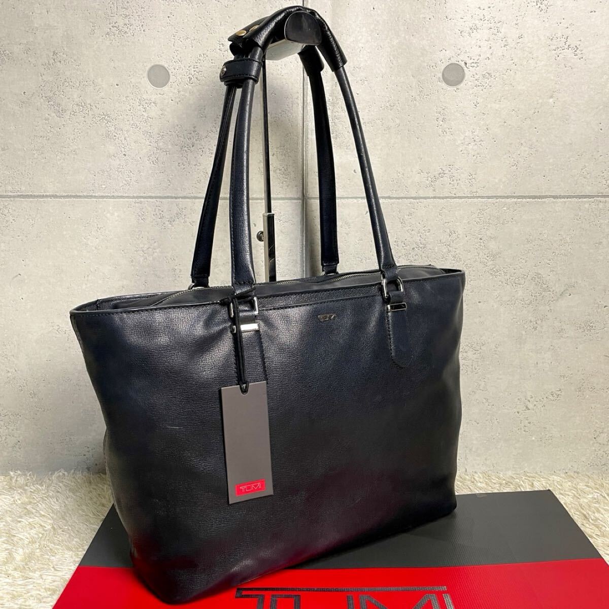> [激レア 最高級] TUMI トゥミ 牛革 オールレザー Stanton Nan Tote Laptop メンズ ビジネス トートバッグ 肩掛け A4+PC可 大容量 通勤 濃紺