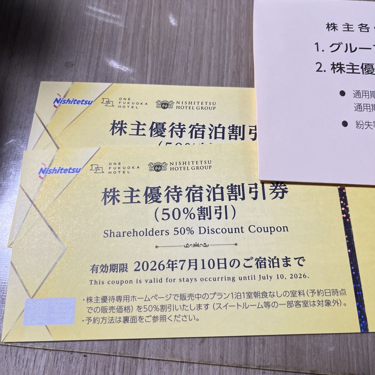 - 西日本鉄道 株主優待宿泊割引券(50%割引)2枚