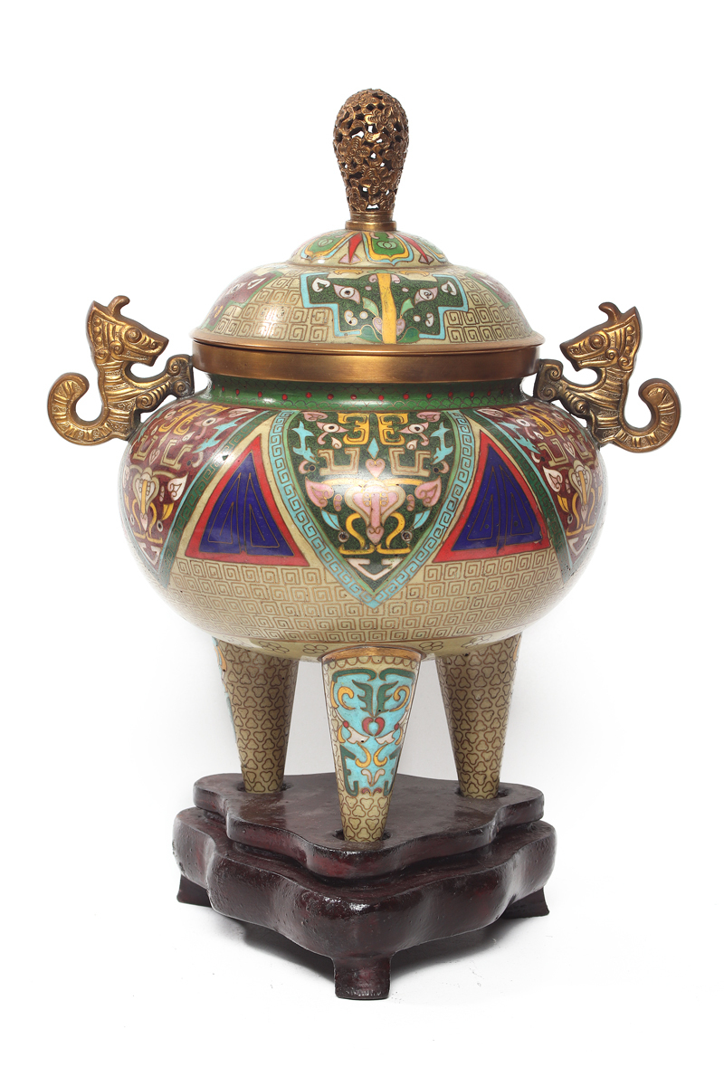 - 景泰年製 香炉 七宝焼き 景泰藍 古美術 年代物 置物 賞物 青 香道具 仏教美術