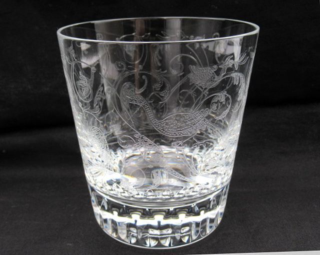 - ▲▲難有り バカラ Baccarat パルメ PARME ロックグラス カケ有り 高さ約9.6㎝ クリスタルガラス クリアカラー 花鳥柄▲▲