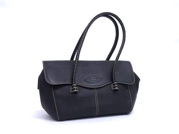 > 1円 ■美品■ TODS トッズ レザー ハンドバッグ トート ショルダー 肩掛け レディース ブラック系 FN8827