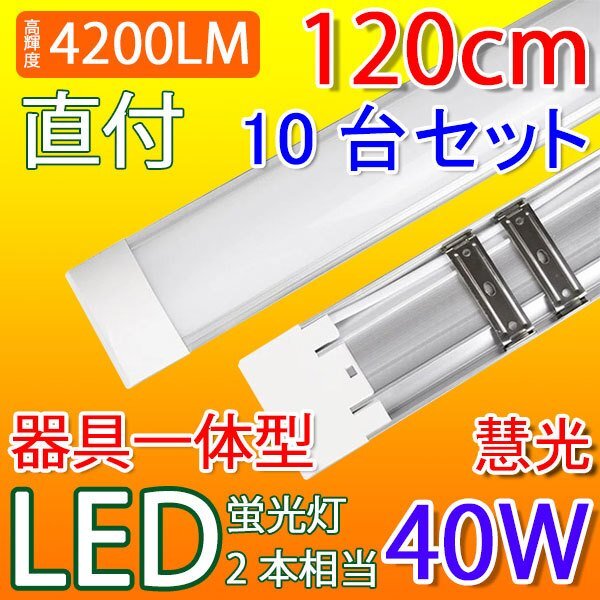 > LED 蛍光灯 器具一体型 10本セット 40W型 直付 昼光色 ベースライト 100V用 薄型 工事必要 it-40w-10set