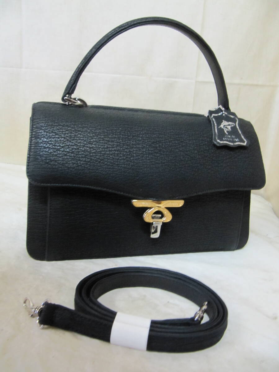 - ★中古美品★長期袋入れ保管品シャークスキン ハンドバッグ 黒 ブラック