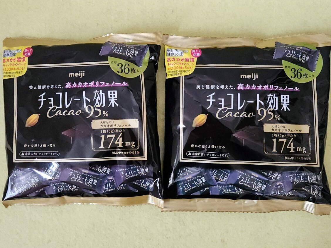 - [期限26年4月以降] 72枚 2個 大容量 業務用 増量 明治チョコレート効果 カカオ 95% 大袋36枚 2袋セット 新品未開封 匿名配送 追跡可能