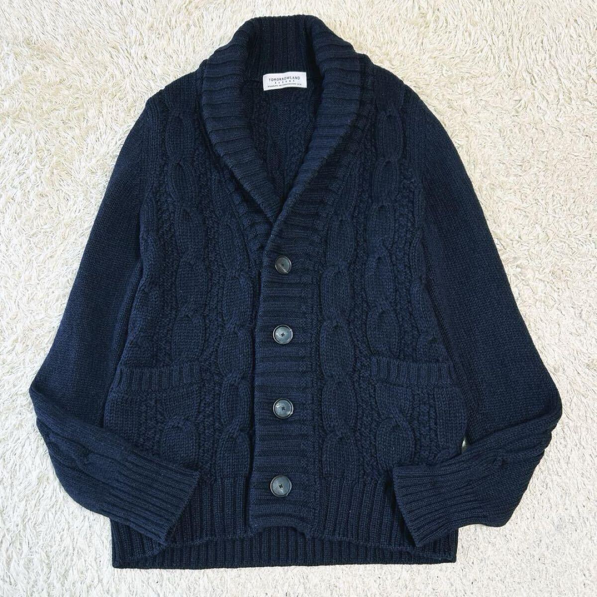 > 美品 TOMORROWLAND tricot トゥモローランドトリコ ケーブルショールカラーカーディガン ウール100% ネイビー メンズ M相当