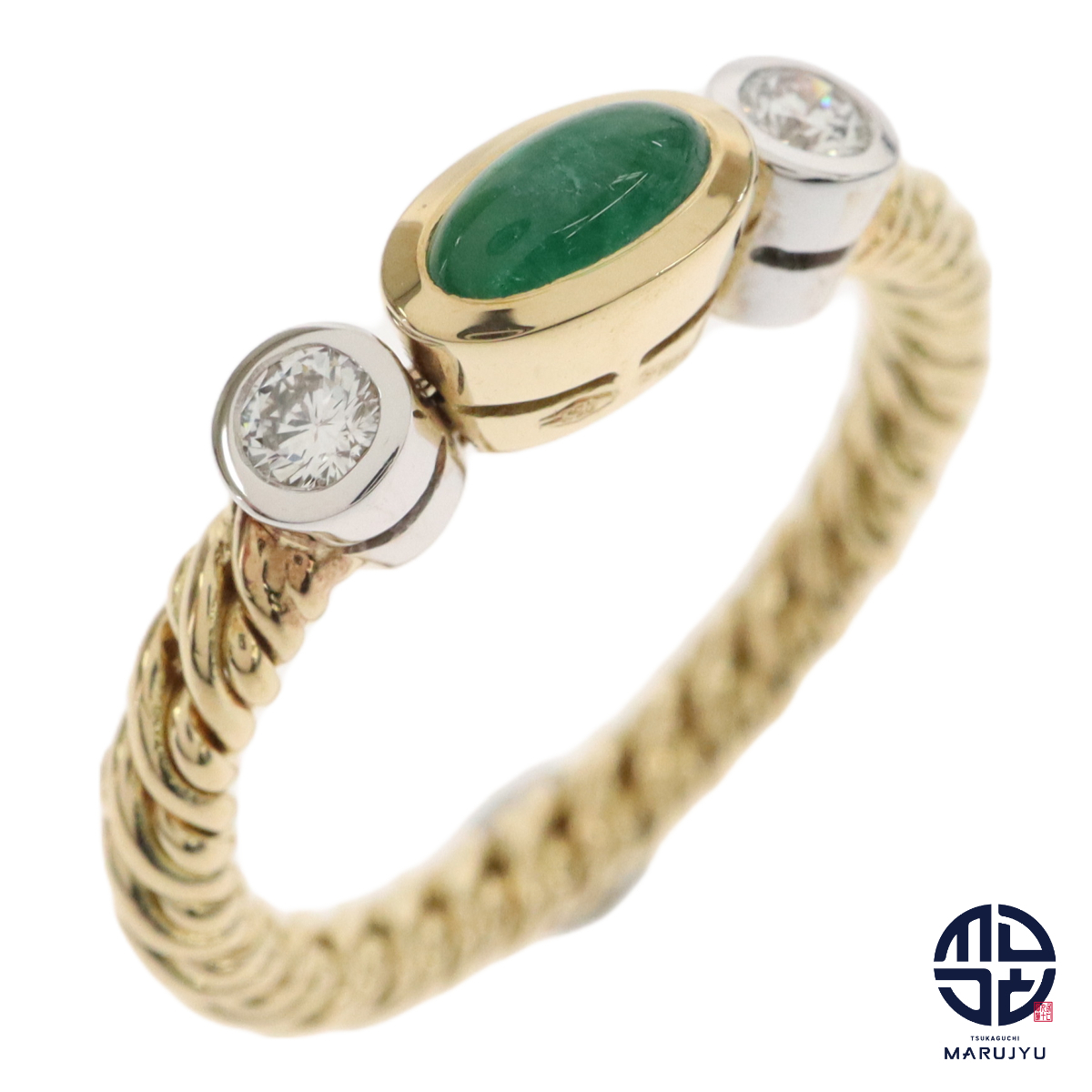 > Pomellato ポメラート 750YG 18金イエローゴールド K18 エメラルド ダイヤ カボション チェーン リング 指輪 ジュエリー 約19号