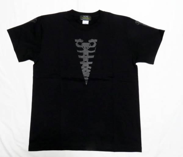 - ボーン骨スカル骸骨TシャツTCM(鎖骨有りV)no4.黒グレイM
