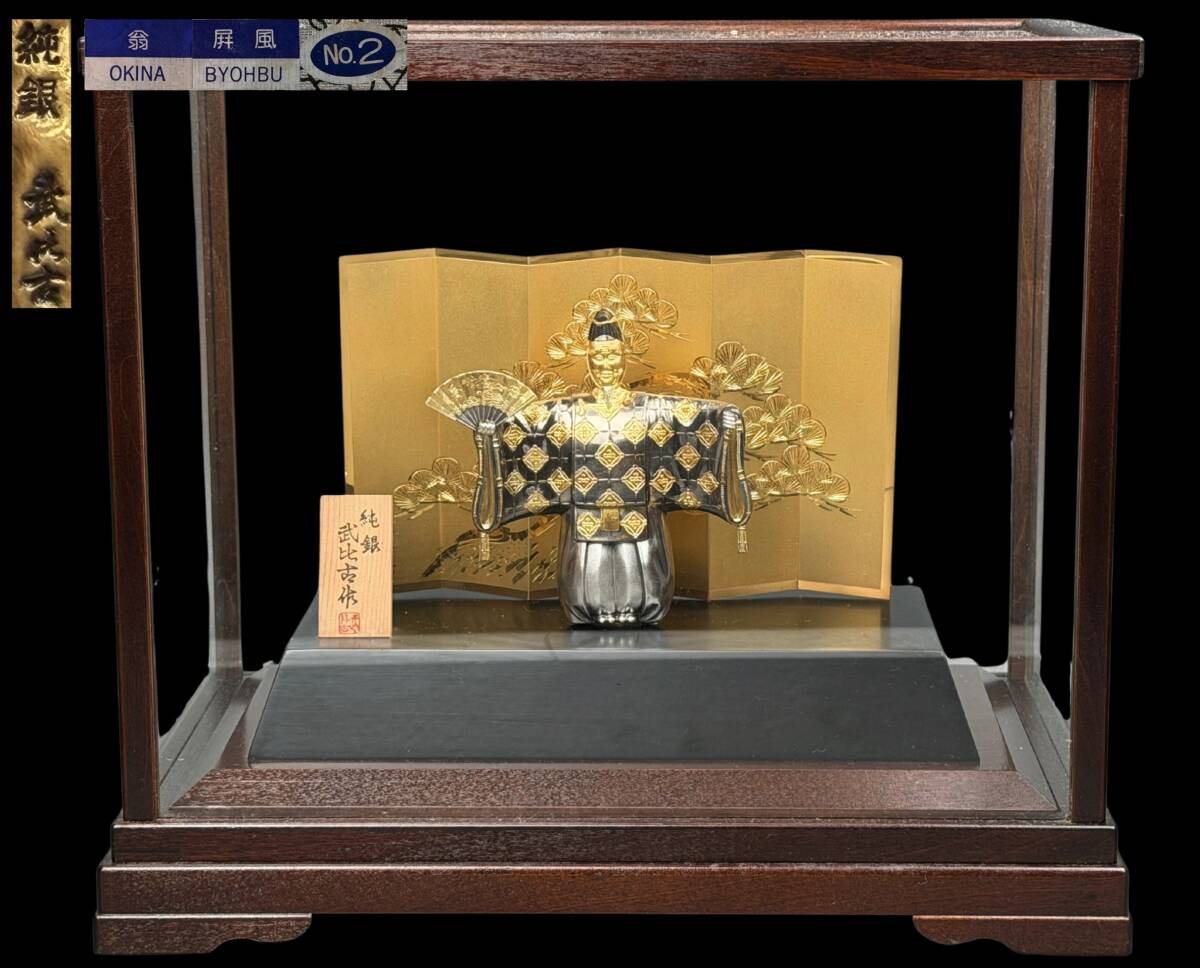 - 【忠古堂】純銀製 103g 翁 武比古 高級 コレクション 美術品 置物 工芸品 伝統 銀工芸 2号 屏風付 r-1554