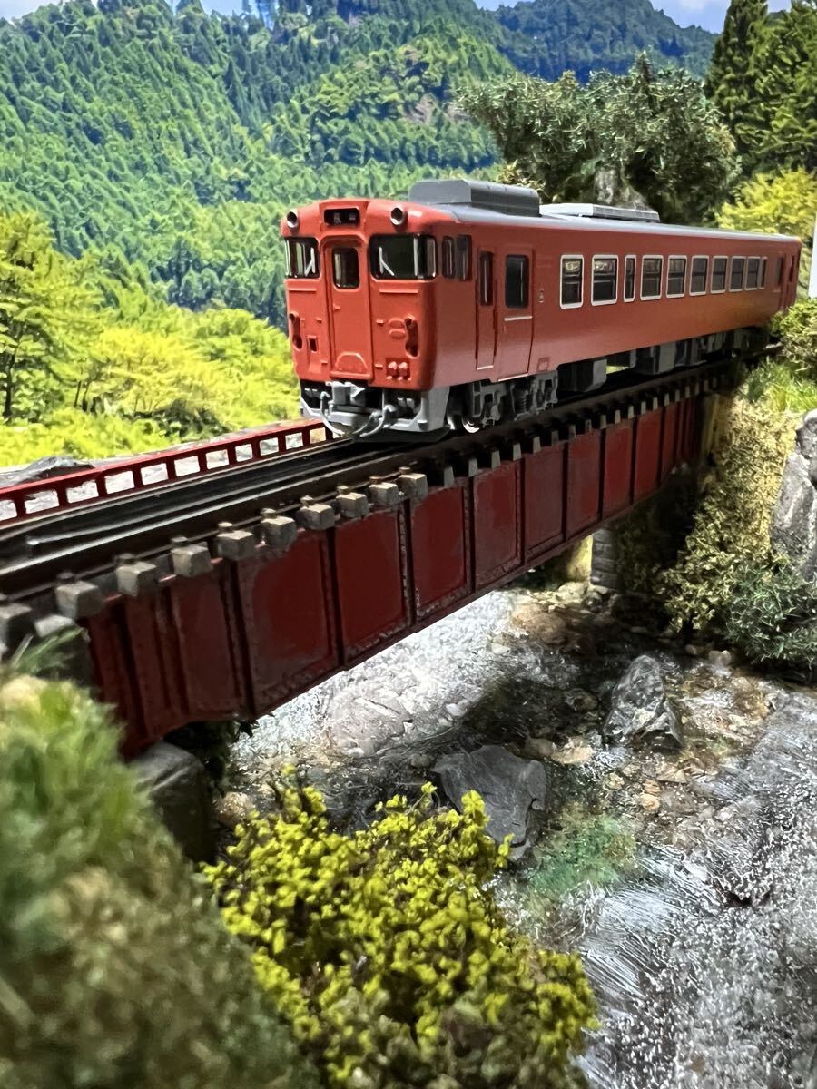 - 【走行可能】 Nゲージ 車両展示台 ジオラマ 新緑の深い山間の滝を渡るガーター橋