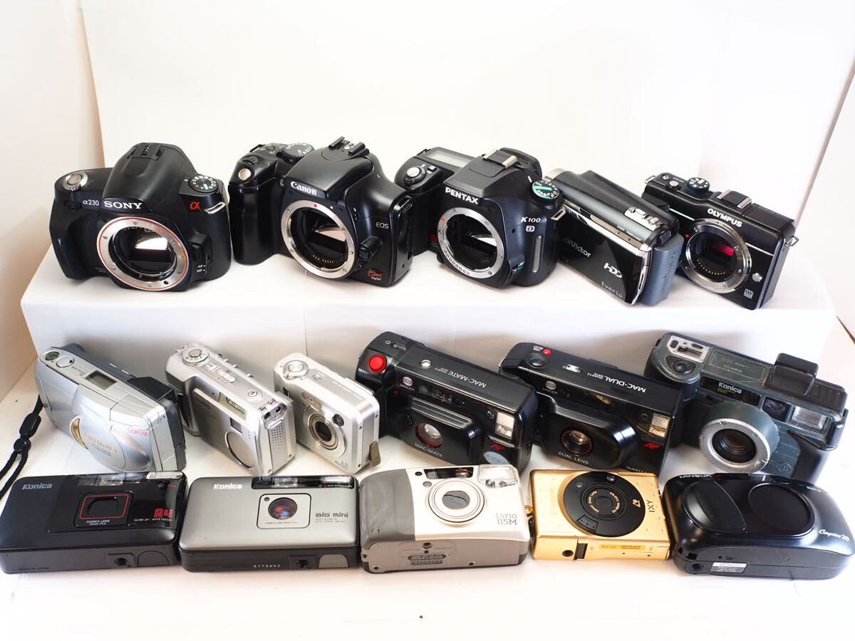 > ★ジャンクカメラ16台まとめ★ コンデジ コンパクトフィルム デジタル一眼 Canon MINOLTA KONICA SONY PENTAX OLYMPUS 動作未確認 M321s-1