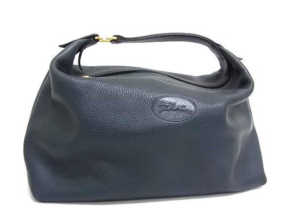 - 1円 ■美品■ LONGCHAMP ロンシャン レザー ワンハンドル ハンドバッグ ミニバッグ ポーチ レディース ネイビー系×ゴールド系 FU8999