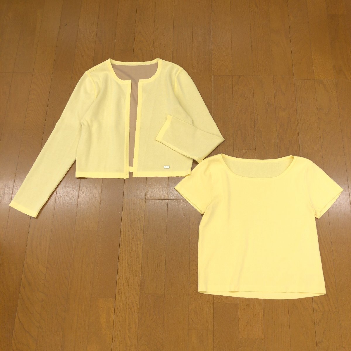 - FOXEY フォクシー コットン ニット アンサンブル 40(L) イエロー 日本製 カーディガン 羽織り セーター カットソー レディース