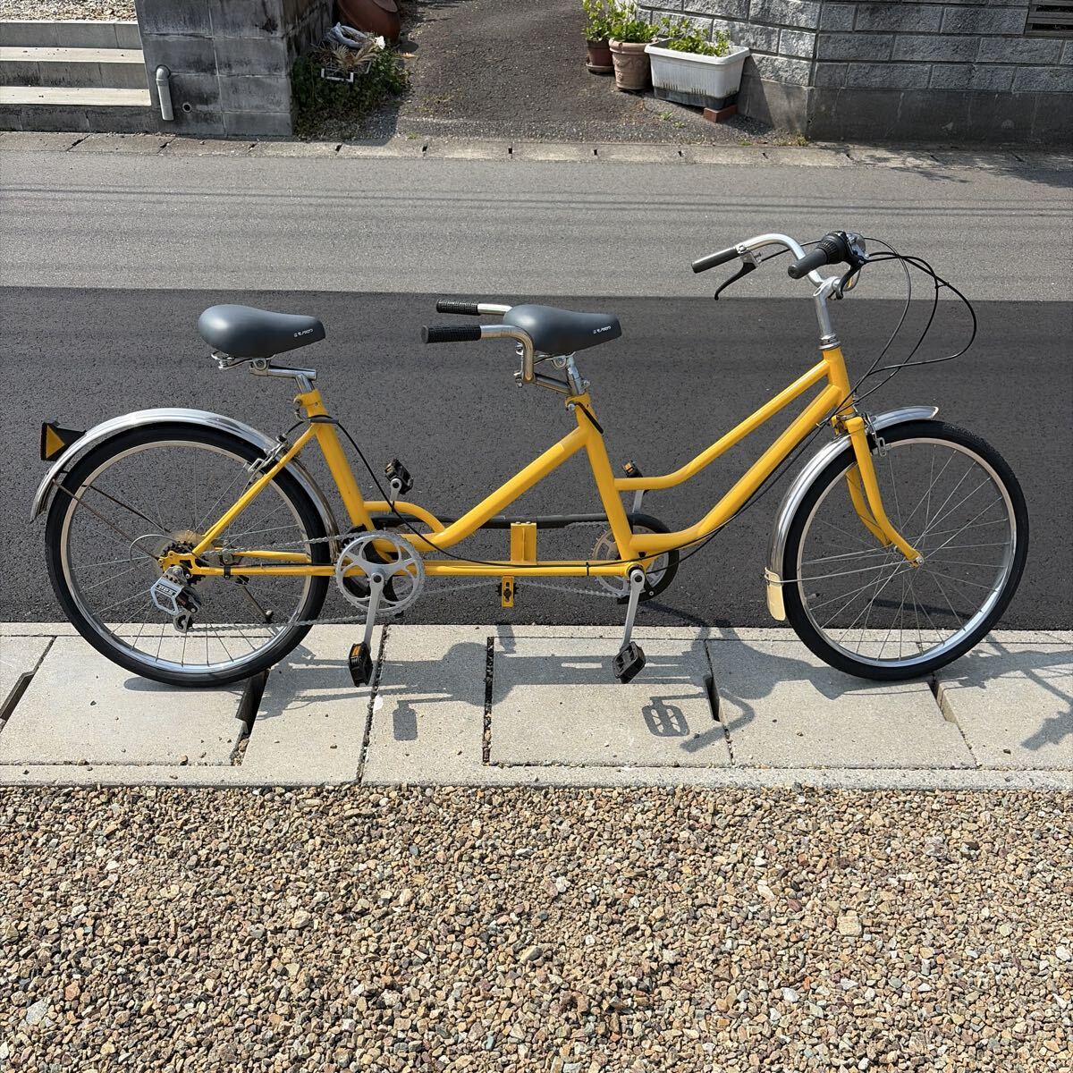- タンデム自転車 2人乗り自転車 黄色 レトロ