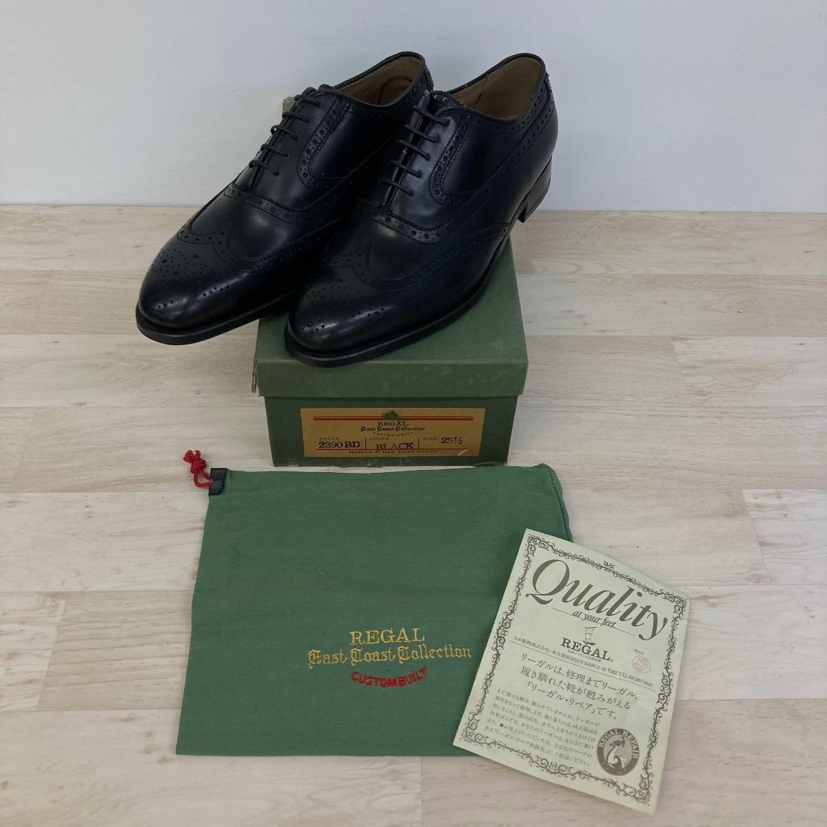 > 美品 REGAL East Coast Collection 2390 BD ウイングチップ ビジネスシューズ 25 1/2 ブラック 黒 リーガル 外箱/保存袋付[OR02345]
