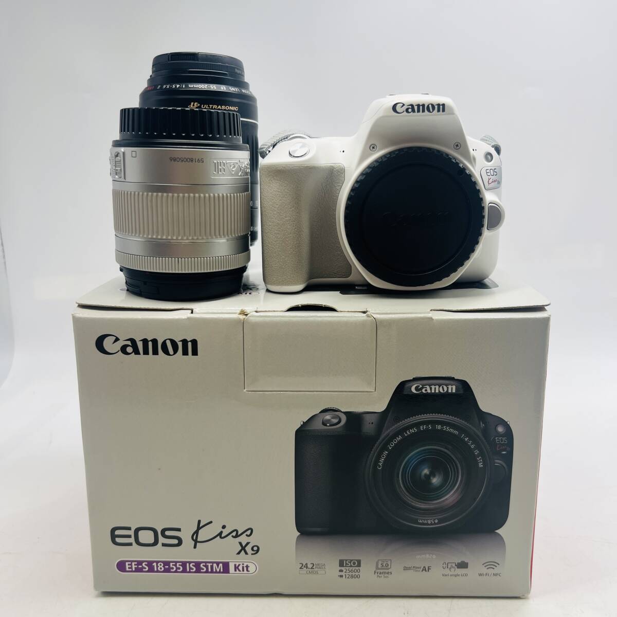 - 【7534】Canon キャノン EOS Kiss X9 EF-S 18-55 IS STM EFS 18-55mm ULTRASONIC 55-200mm レンズ2個 箱付き 起動確認済み