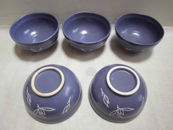 - ★モダン 紫 パープル 花柄 変り小鉢 小鉢 径11.5cm 5客 新品 陶器 工芸品 レトロ★