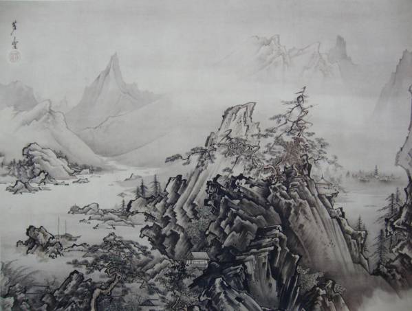 - 狩野芳崖、千厳萬壑之図、希少な額装用画集より、新品高級額装付、状態良好、送料無料