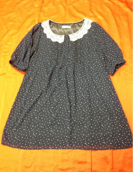 - apartment market レース襟付き ドット柄 半袖ワ ンピース 紺 M