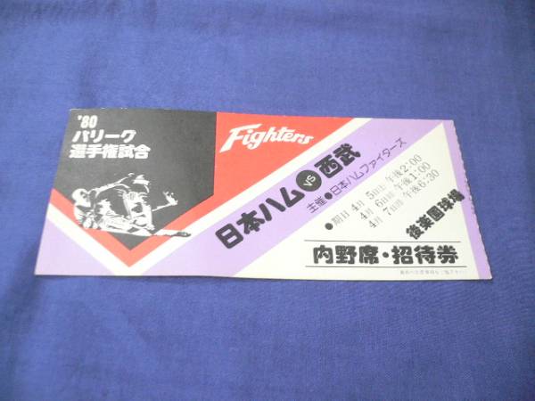 - 古いプロ野球 チケット半券⑥◆ '80パリーグ選手権試合 日本ハムVS西武 日本ハムファイターズ 西武ライオンズ 後楽園球場