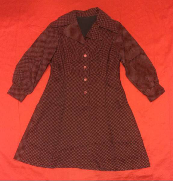 - 昭和レトロ古着 ビンテージ 長袖 ポリ ワンピース ドット風 総柄