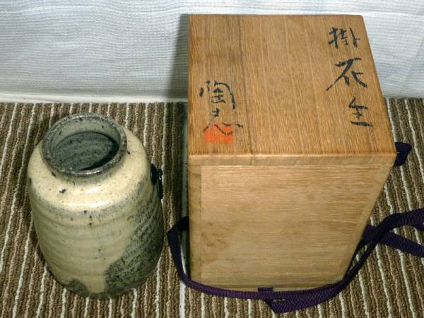 - 遺品 在銘 陶志 掛花生 花器 花びん 花瓶 茶道具 華道 陶器 共箱 保管品