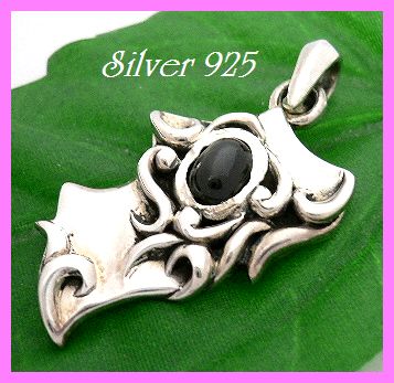 - シルバー925銀の天然石ブラックスター付トライバルエッジ ペンダント