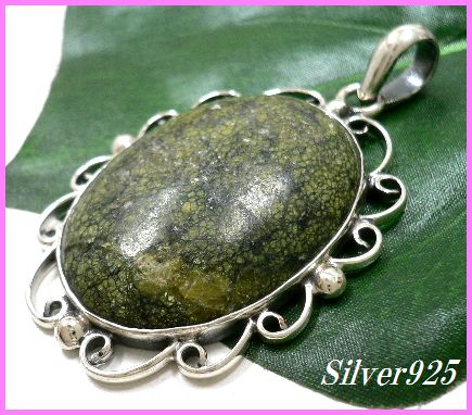 - シルバー925銀の天然石グリーンターコイズ ネイティブ ペンダント