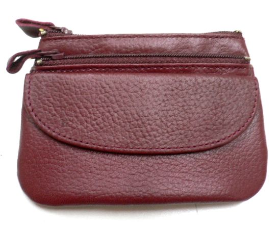- 牛革コインケースWファスナー小収納/ワイン/レザー製品ALL20%OFF