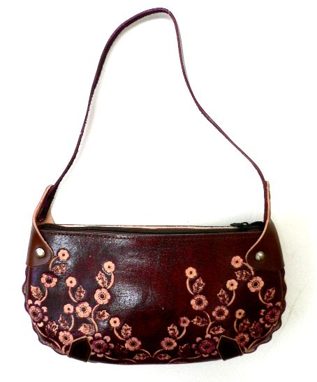 - 牛革 花柄 両面 型押しハンドバッグ/赤茶/レザーバッグALL20%OFF
