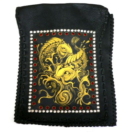 - 牛革スタッズ和柄 鯉ショルダーバッグ黒/レザーバッグALL20%OFF