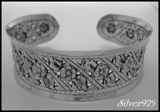 - シルバー925銀のプルメリア フラワー バングル/フリーサイズ