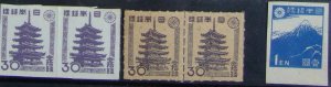 - 昔懐かしい切手 第1次新昭和 五重塔30銭2枚 線状目打2枚 富士1円淡色1枚
