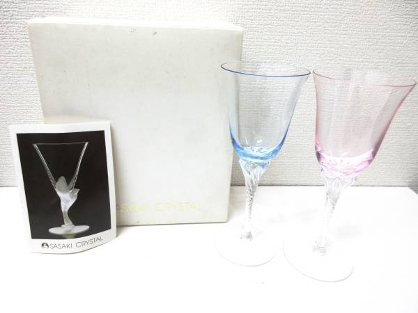 - 未使用品・希少品■SASAKI CRYSTAL GLASS 佐々木クリスタル ホーソン ワイングラス ペアセット ブルー ピンク 管理1703 R-13