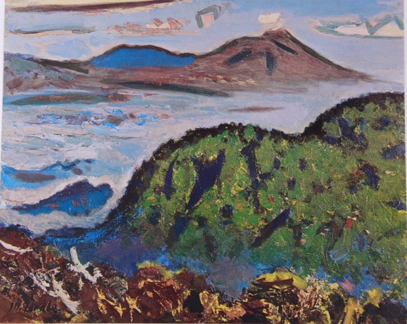 - 田辺三重松、美ケ原より浅間遠望、限定希少画版・大判コロタイプ、信州名画、新品高級額装付、送料無料