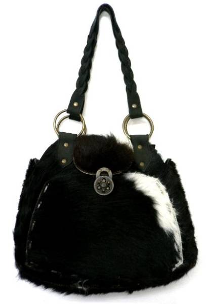 - 牛革×本ハラコ全面 黒毛白毛ハンドバッグ 1点のみ/レザーバッグALL20%OFF