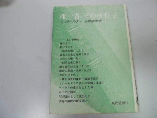 - ●P719●唯一者とその所有●上巻●古典文庫●シュティルナー片岡啓治●現代思潮社●人間生活精神自由人政治的社会的自由主義●即決