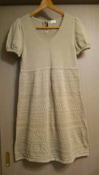 > メルローズ ワンピース チュニック カットソー ベージュ カットワーク 刺繍 パフスリーブ 上品 可愛い系 きれいめ きれい系 ナチュラル系