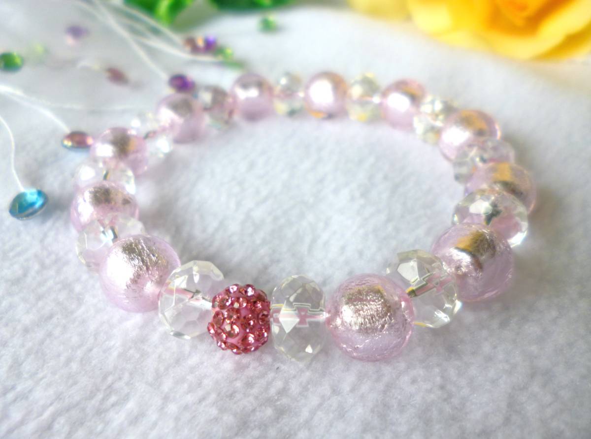 - ☆可愛いイチゴミルク☆とんぼ玉(トンボ玉)☆きらきら輝く☆ホタルガラス♪ ☆シルバーピンク☆ ☆10mm☆ ☆16cm☆